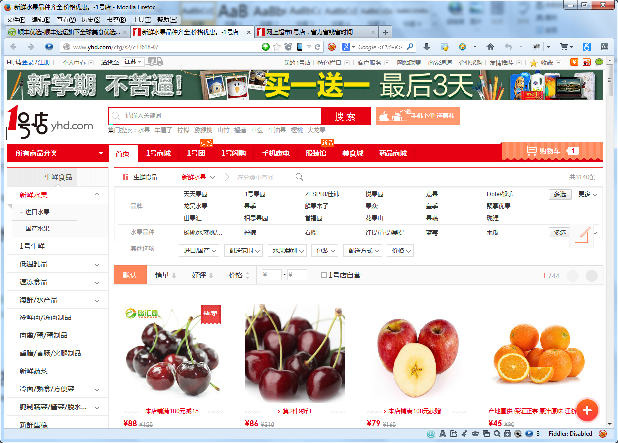 一号店也卖新鲜水果