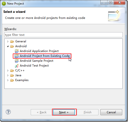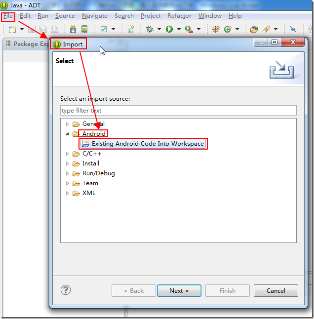 2。从Project中Import,选择Existing Android Code into Workspace,就可以正常导入了。