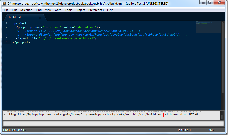当前通过sublime打开了一个xml文件。