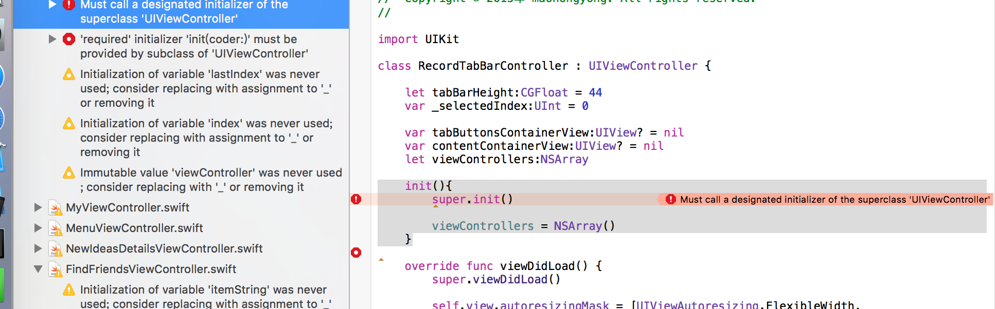 swift:21:9: Must call a designated initializer of the superclass ‘UIViewController’