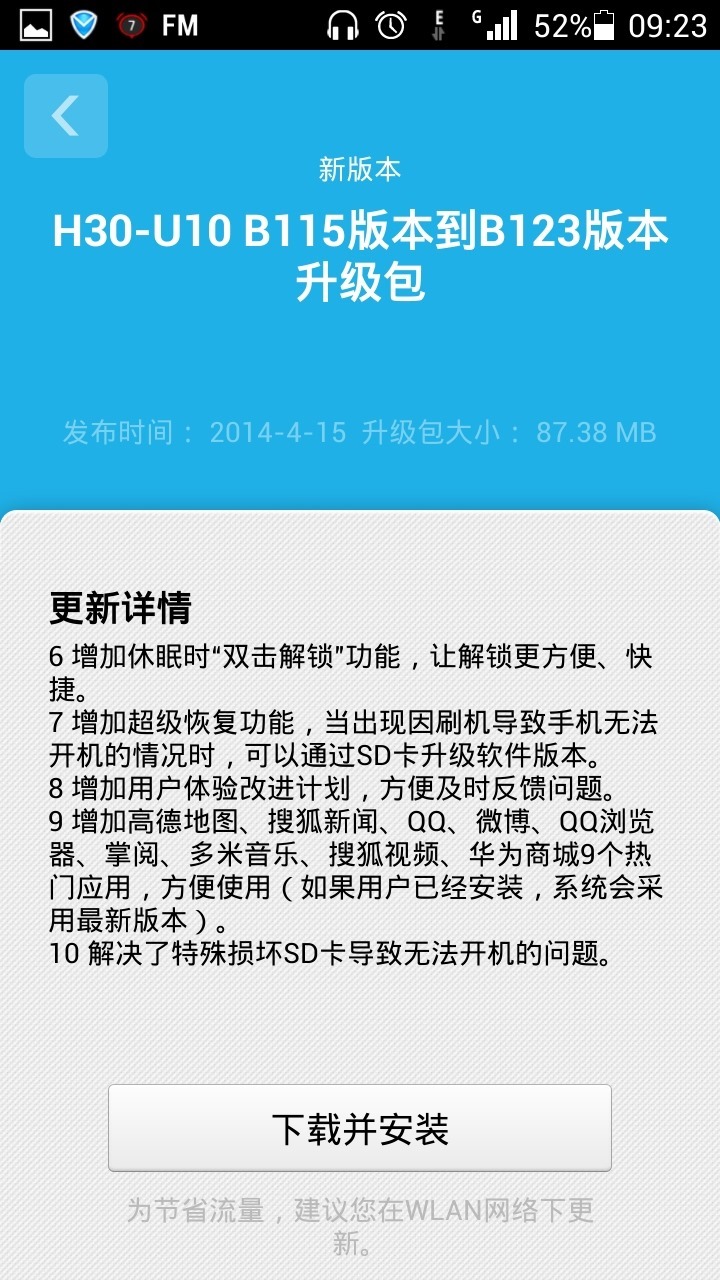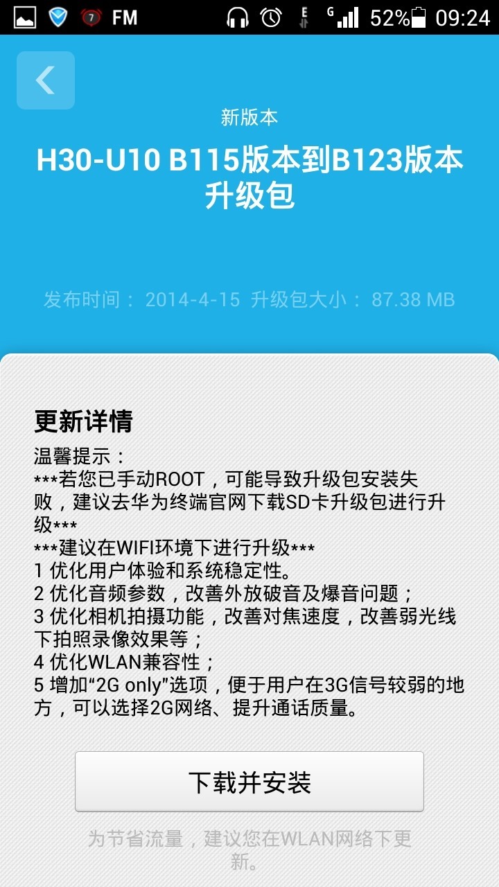 拿到华为荣耀3C H30-U10后,没多久,就看到手机中有提示,系统软件更新: