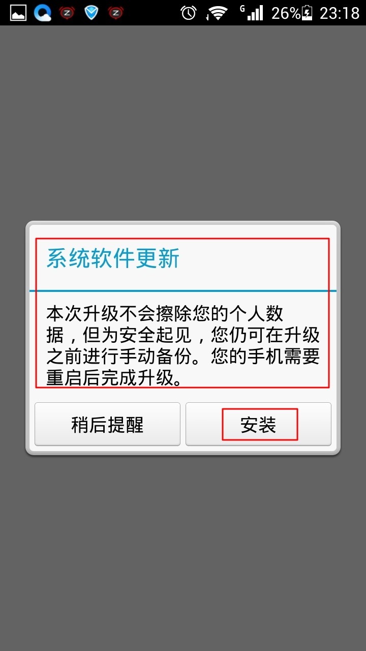 3.下载完成后,会提示你,升级系统,不会清除你之前的数据