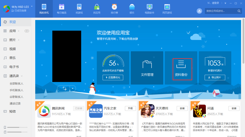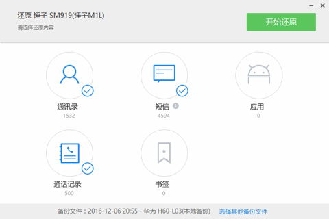 先把旧手机华为荣耀6中的数据导出来用的是腾讯的应用宝的备份功能然后电脑再插上锤子M1L然后去导入之前备份的数据就可以了锤子M1L中就有了通讯录和短信,通话记录了。转载请注明:在路上 » 【记录】华为荣耀6换成锤子M1L Post Views: 1,127