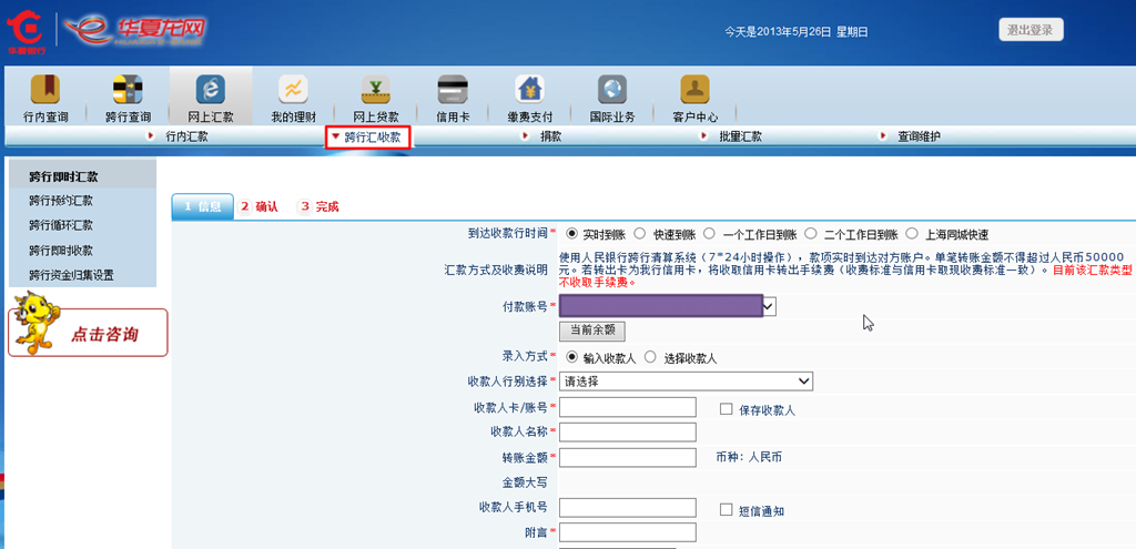网上汇款: