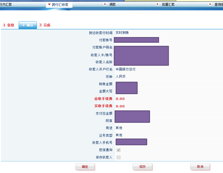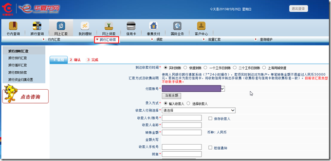 2.后来经过折腾,发现如此操作才可以正常网上跨行转账: