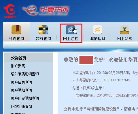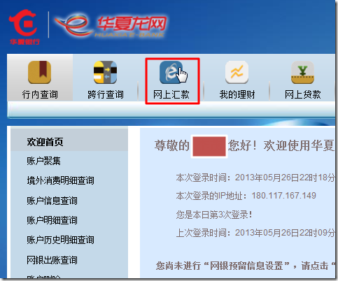(2)(其会自动打开IE,打开对应的华夏银行的主页地址)