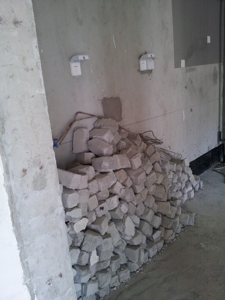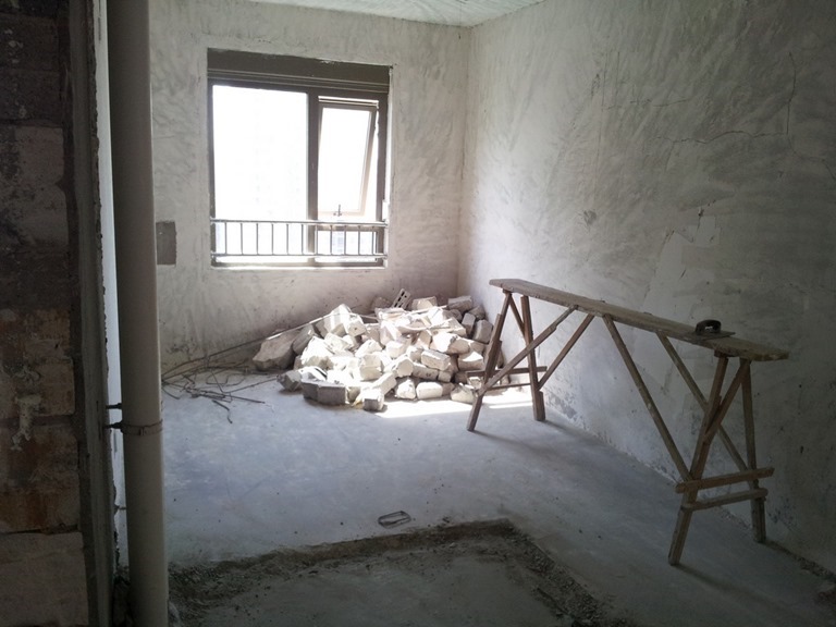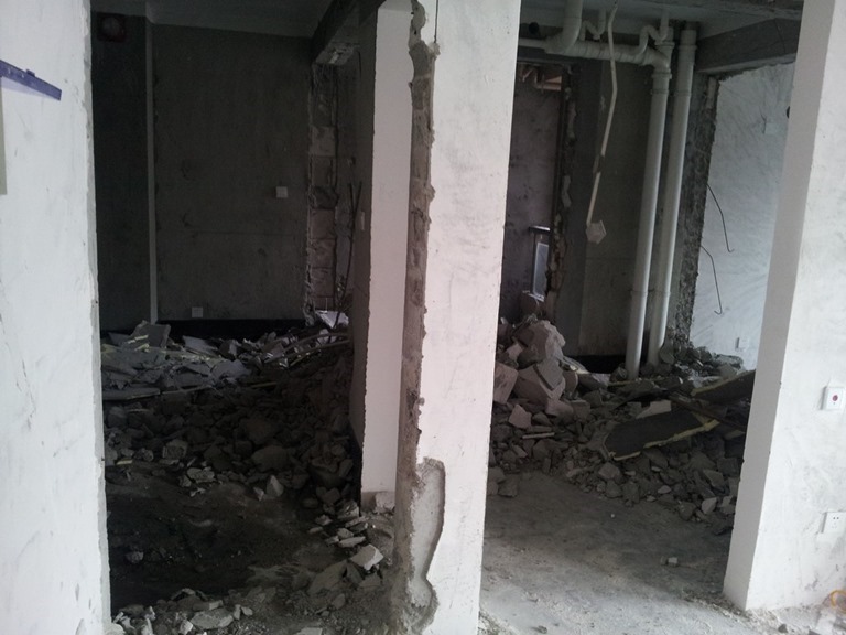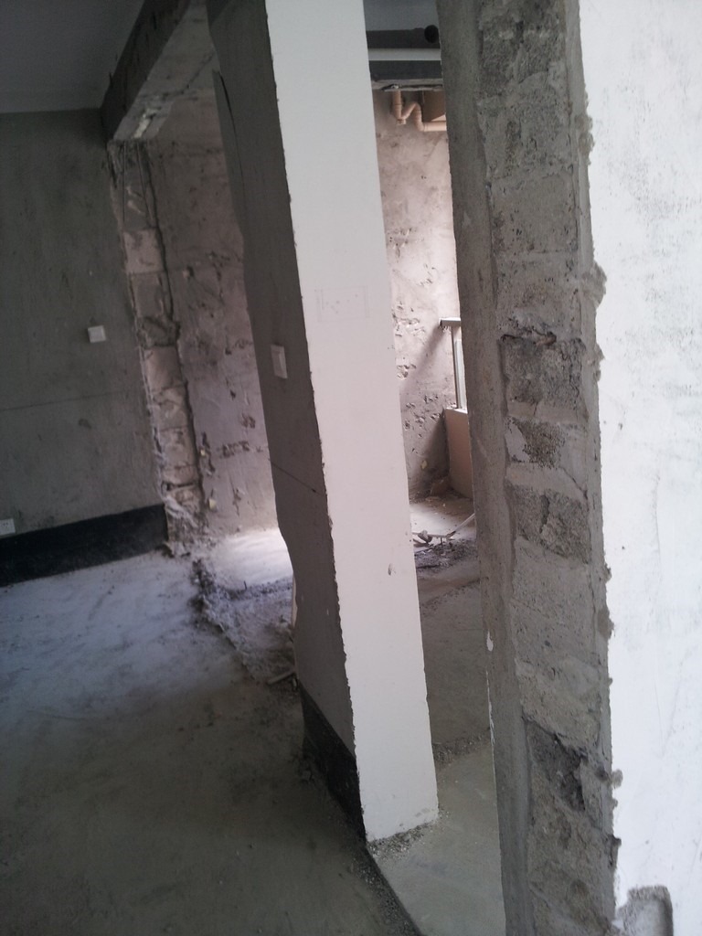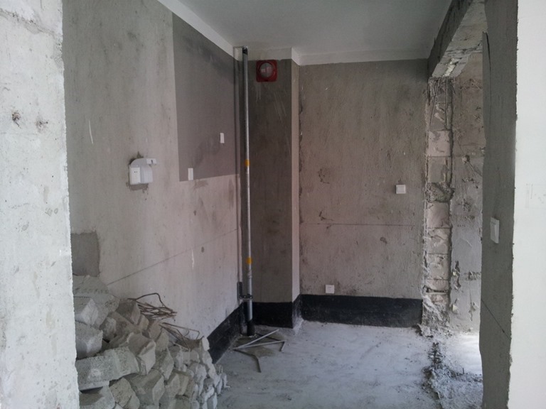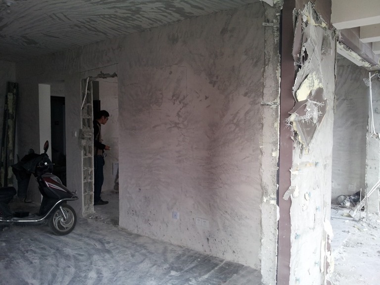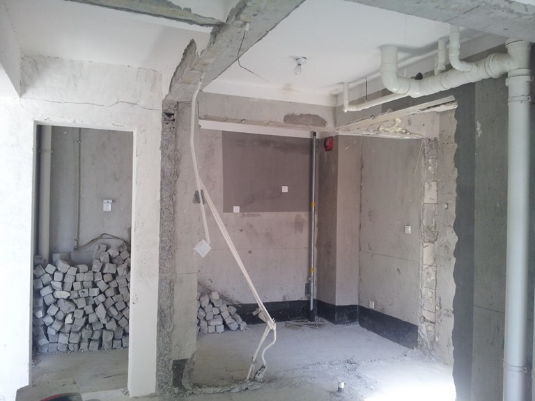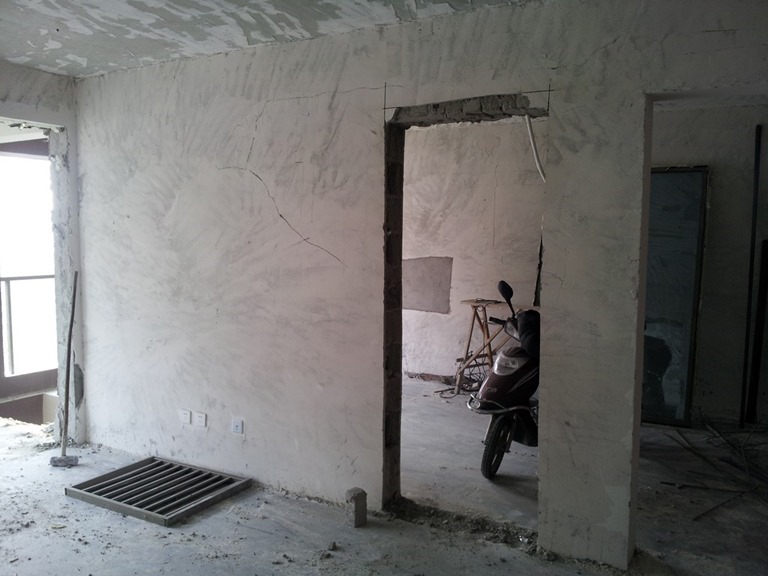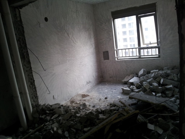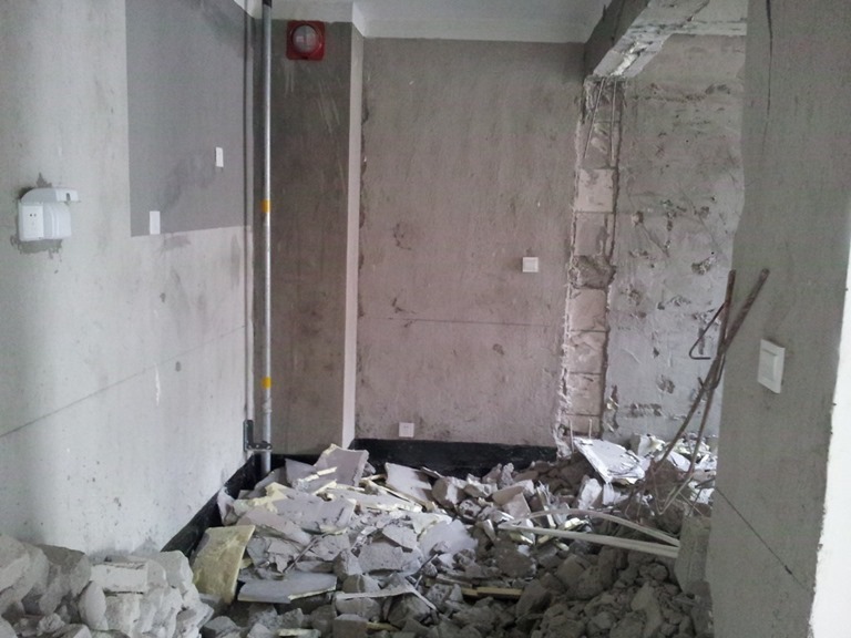 其中,厨房和卫生间那面墙,由于设计师的失误,没有标识清楚,而导致工人直接把整面墙都砸掉了: