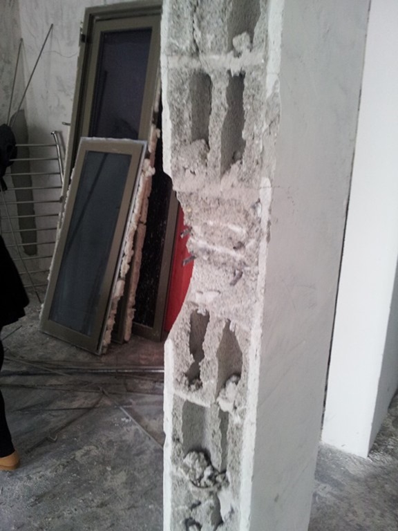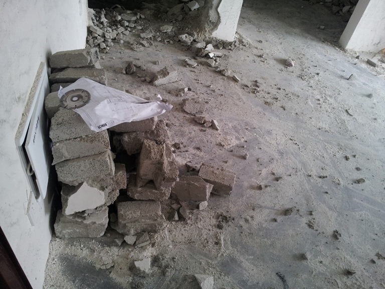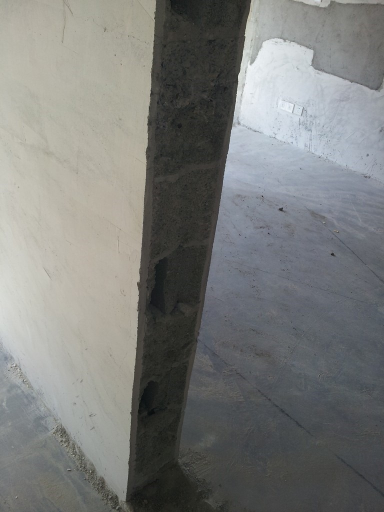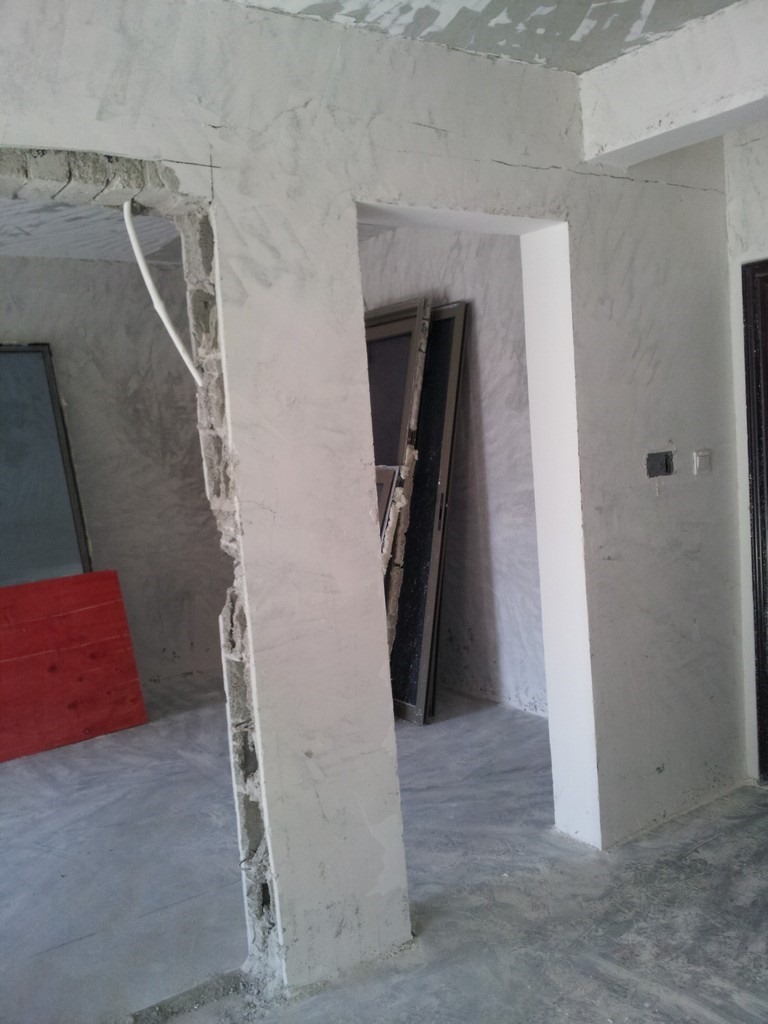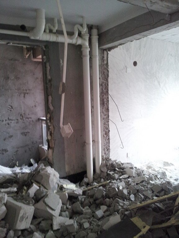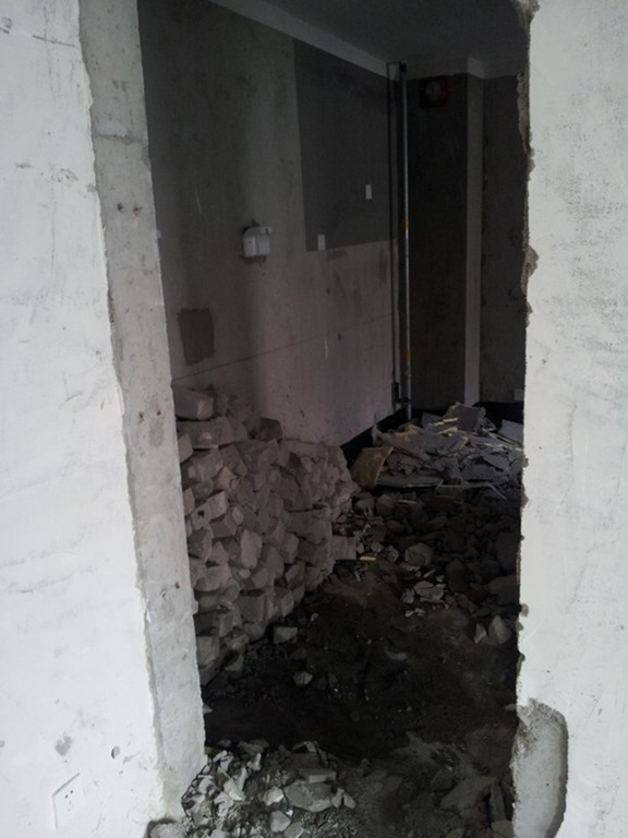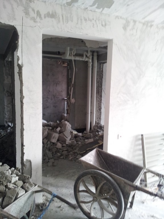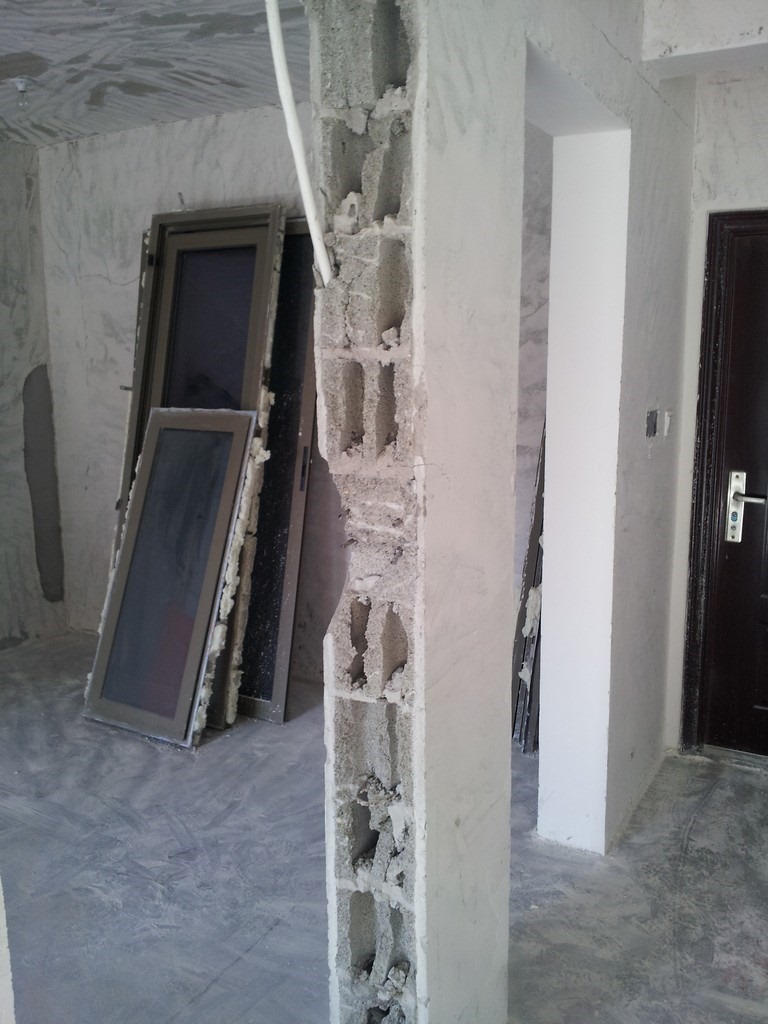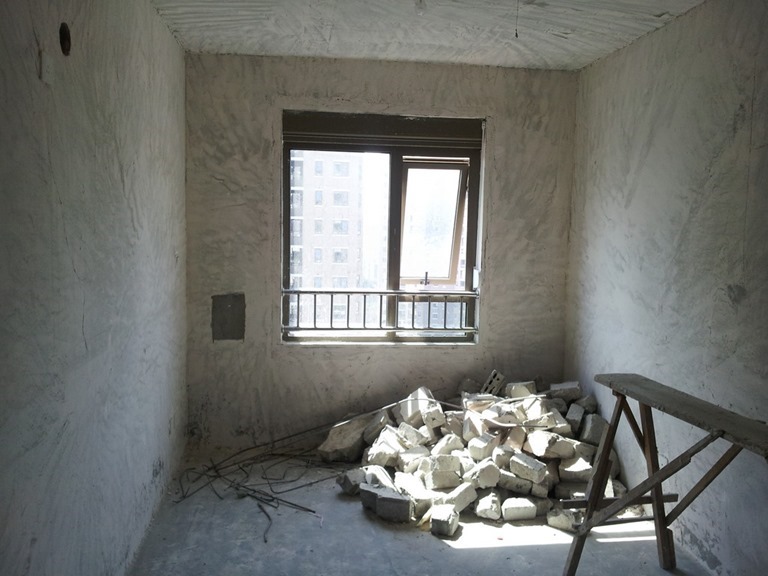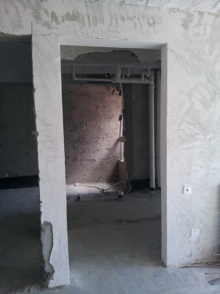 其中,厨房和卫生间那面墙,由于设计师的失误,没有标识清楚,而导致工人直接把整面墙都砸掉了: