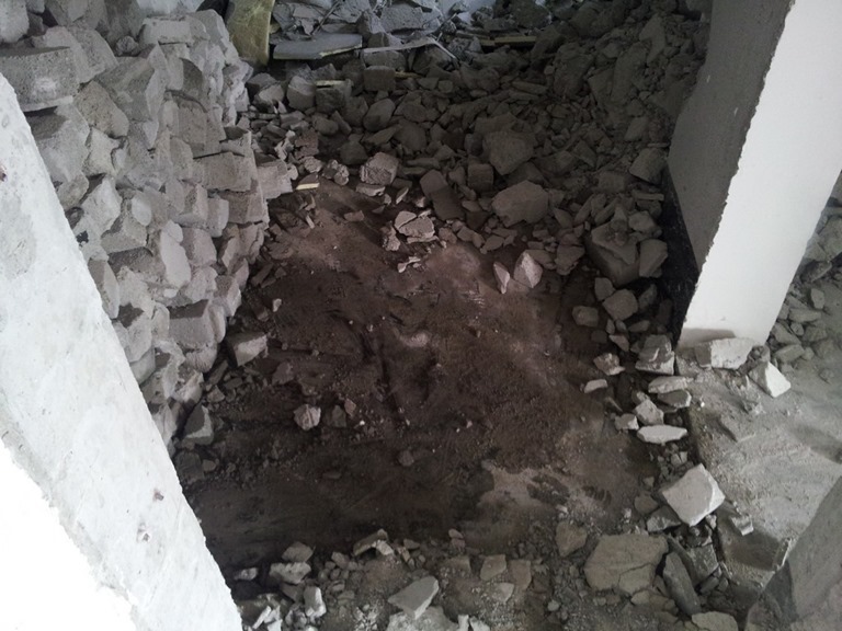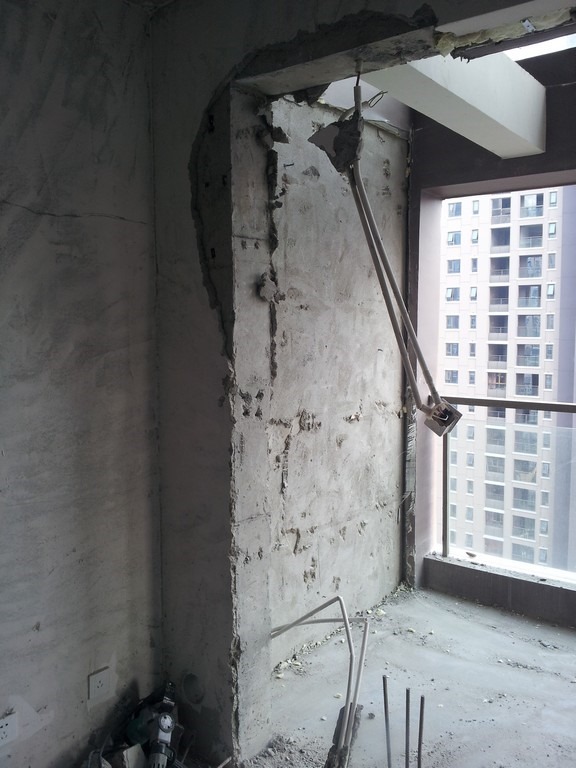 实际上按照当时的方案,只需要砸掉距离顶上的那一部分就行了。