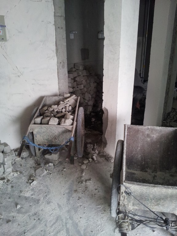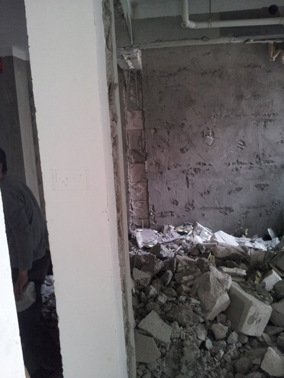 之后,就是去找人,按照设计方案中的砸墙图去砸墙了: