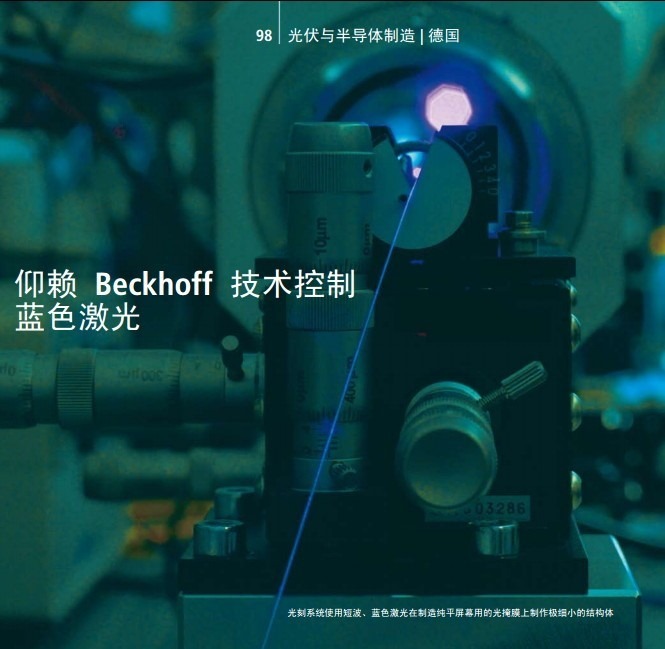 总部位于德国 Tettnang 的 Kleo Halbleitertechnik GmbH 主要制造尖端的光刻系统,用于制作生产液晶屏过程中用到的 光掩膜。系统通过短波、蓝色激光制作极细小的结构体。Artec Engineering GmbH 总部位于德国的 Baienfurt,负责使用Beckhoff 控制系统实现高精度加工过程的自动化改造。