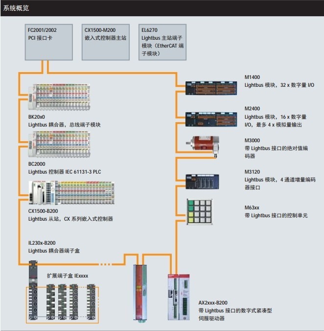 已Beckhoff的产品为例,来说明Lightbus的系统架构: