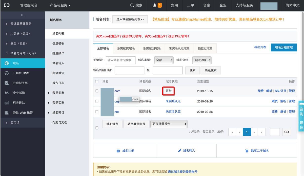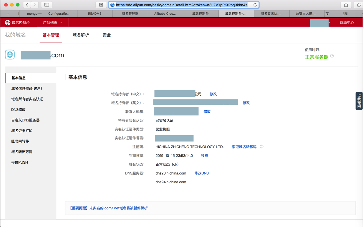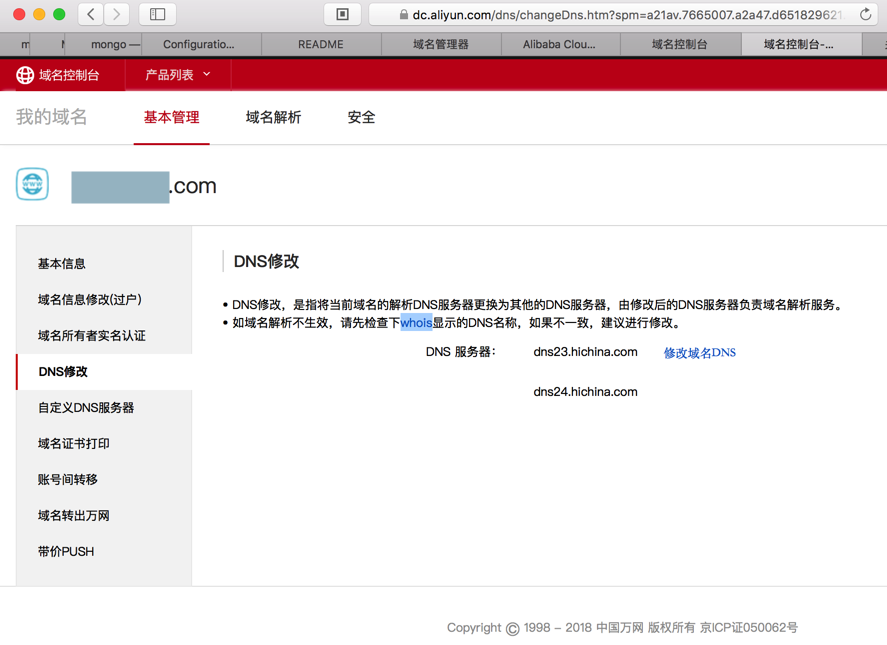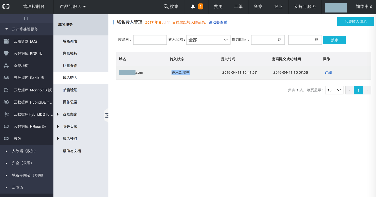期间,为了让公司网站,能在国内备案,需要把域名从现有的Godaddy,转移到国内的,网站服务器所在的阿里云,然后再去走备案流程,才能备案。