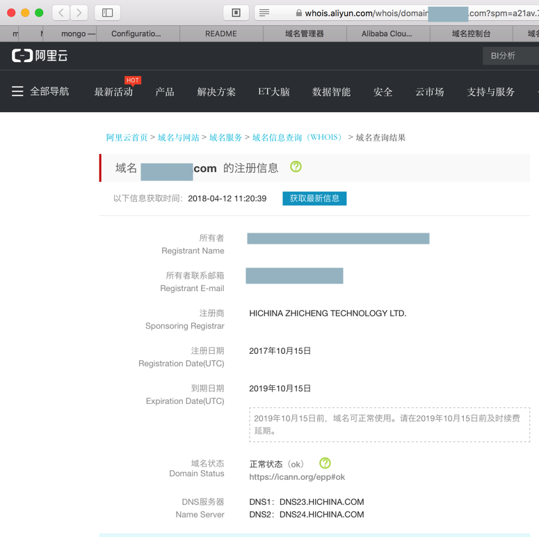 关于域名 xxx.com 的whois信息及网站信息-阿里云