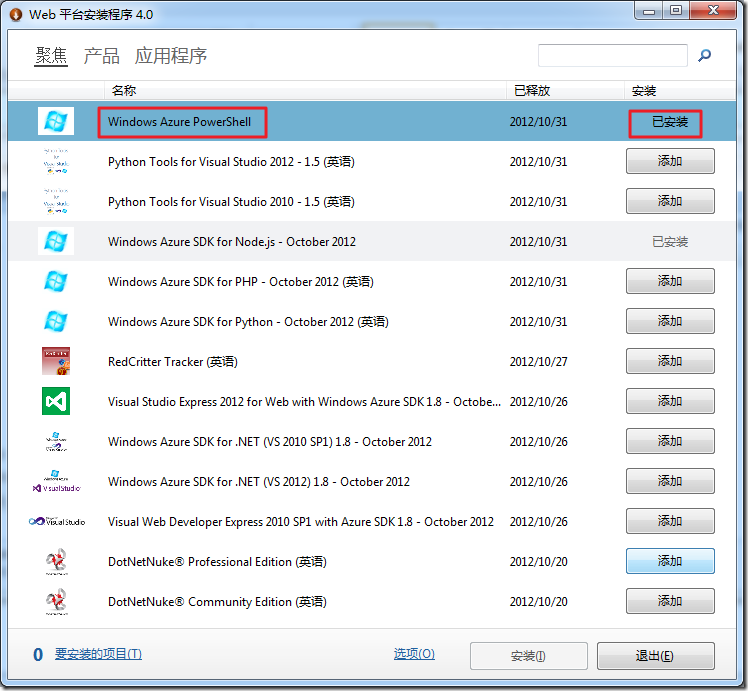 很明显,此处只是安装了Azure的PowerShell,其他很多工具都没安装。