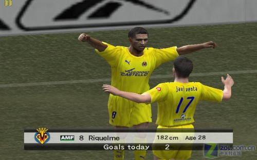 Riquelme梅开二度,与队友庆祝(33 fps)