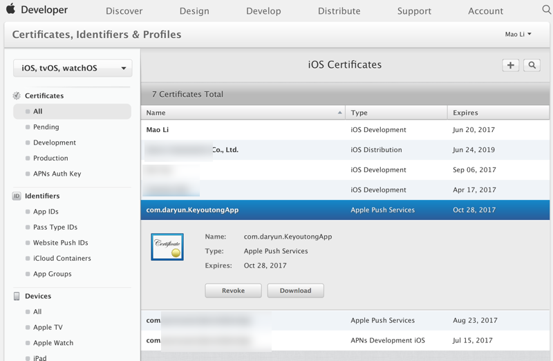多了个证书,用于新的AppID: