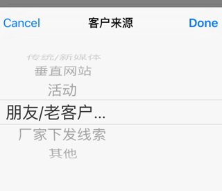 ActionSheetMultipleStringPicker.showPickerWithTitle(“客户来源”, rows: [