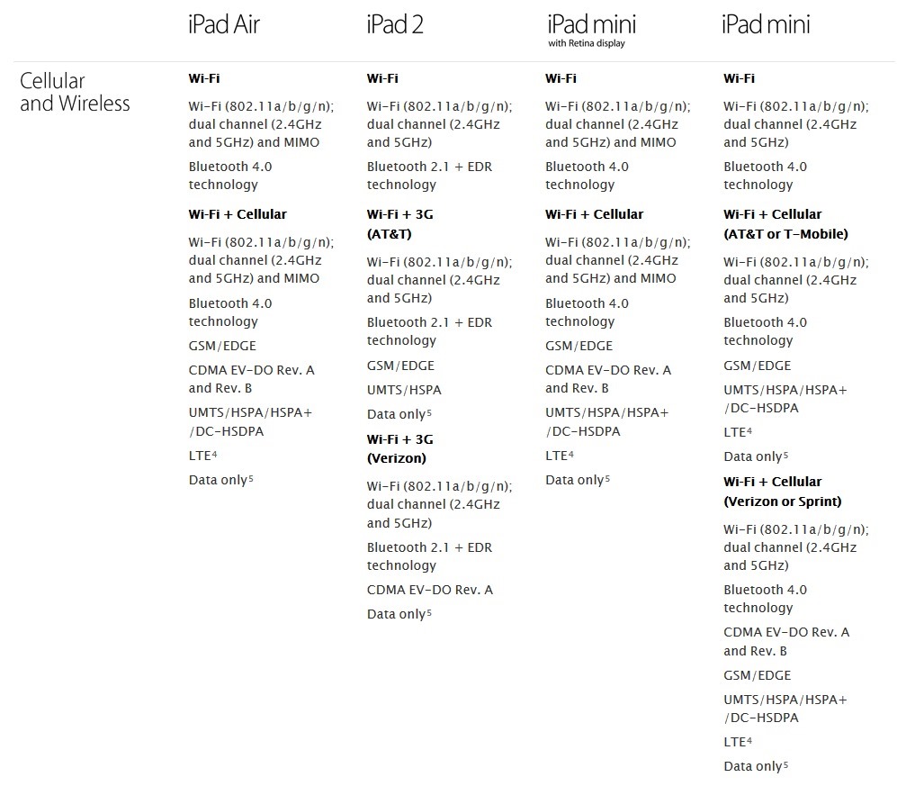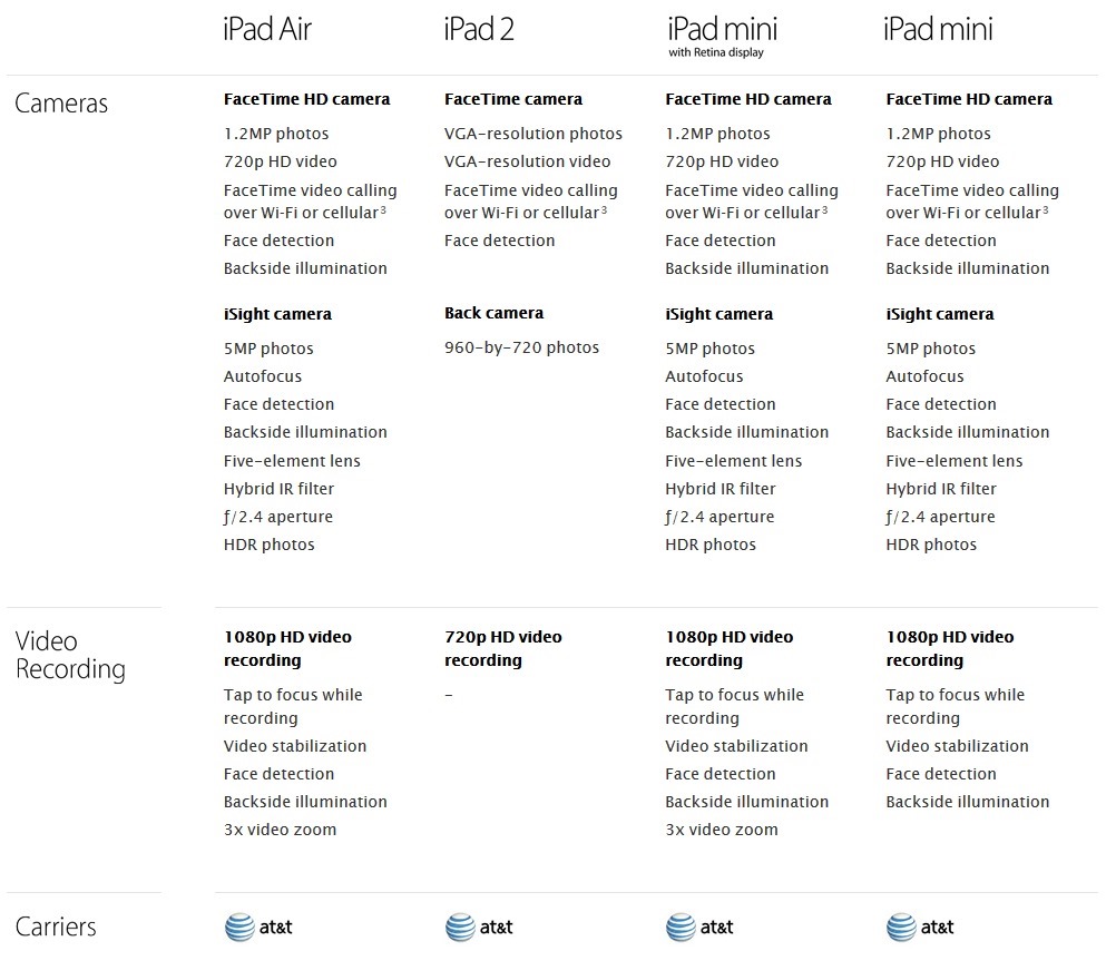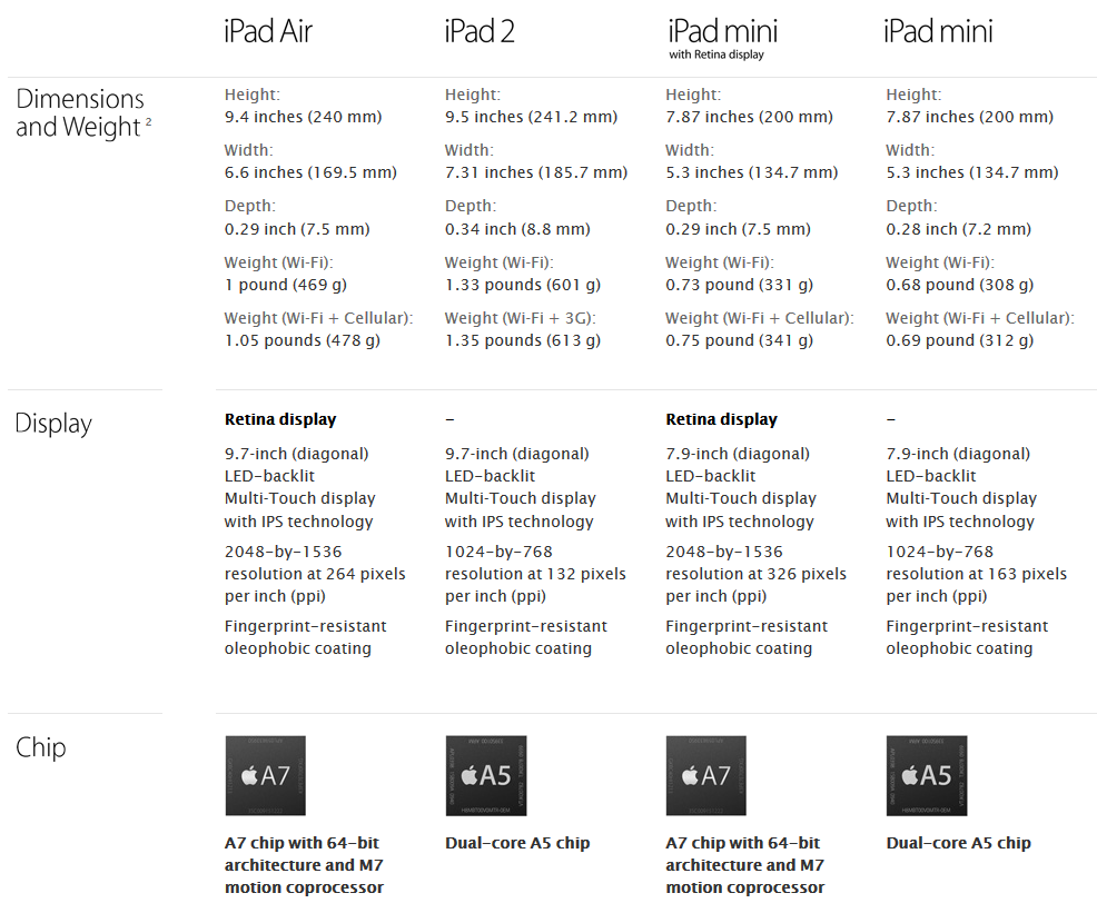 想要找iPad Air和iPad Mini之间的区别,找了半天,最后发现,还是官网解释的清楚: