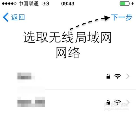 第五步:由于在激活过程,手机需要连接网络与苹果服务器通讯,确认以后才能激活,所以需要用到网络。当然如果你当前手机有3G或4G网络,可以不用选择无线网络,好了以后请点击“下一步” 按钮。