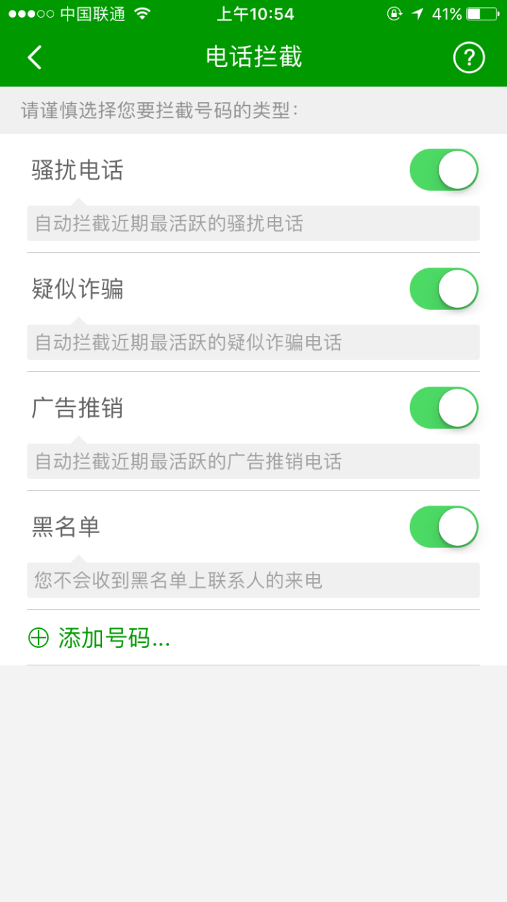 然后开启 电话拦截 功能: