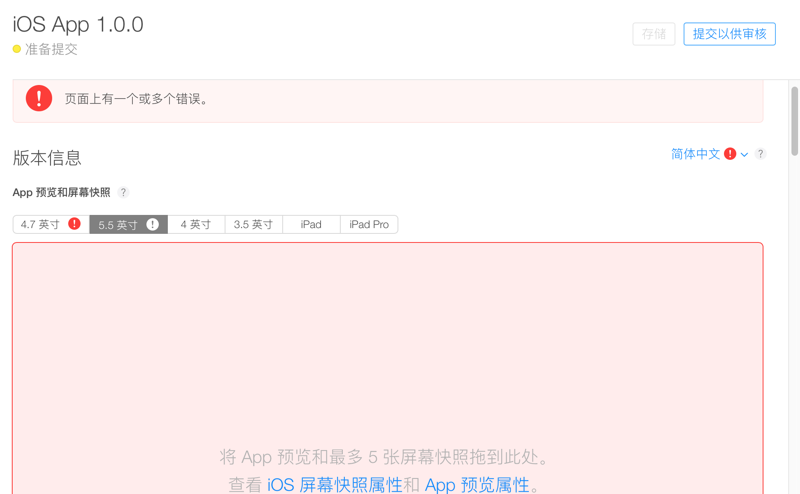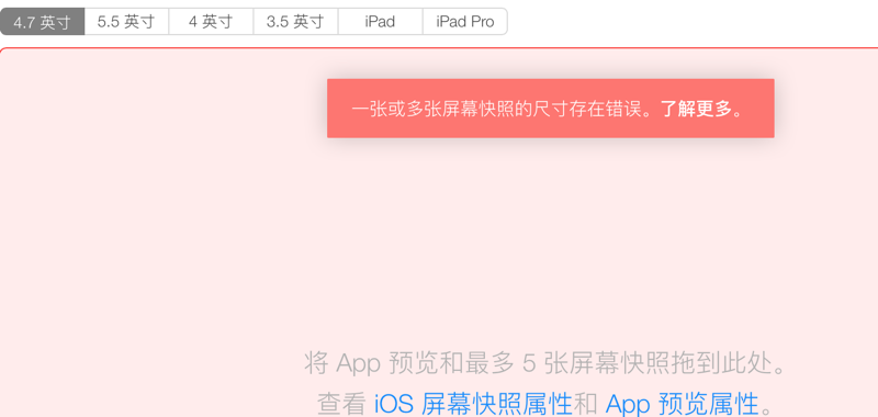 [已解决]iTunes Connect上传app图片出错:一张或多张屏幕快照的尺寸存在错误