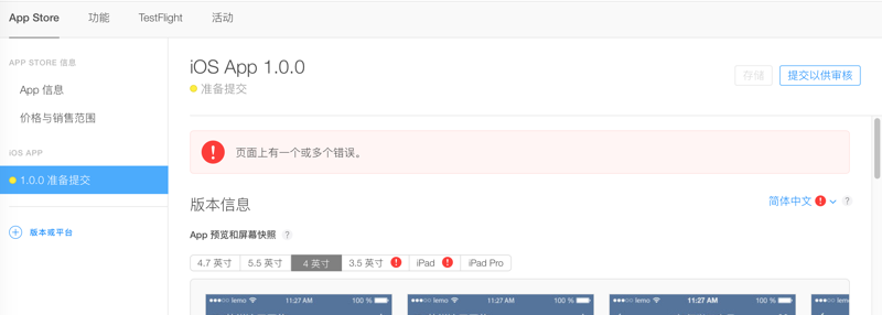 转载请注明:在路上 » [已解决]iTunes Connect上传app图片出错:一张或多张屏幕快照的尺寸存在错误