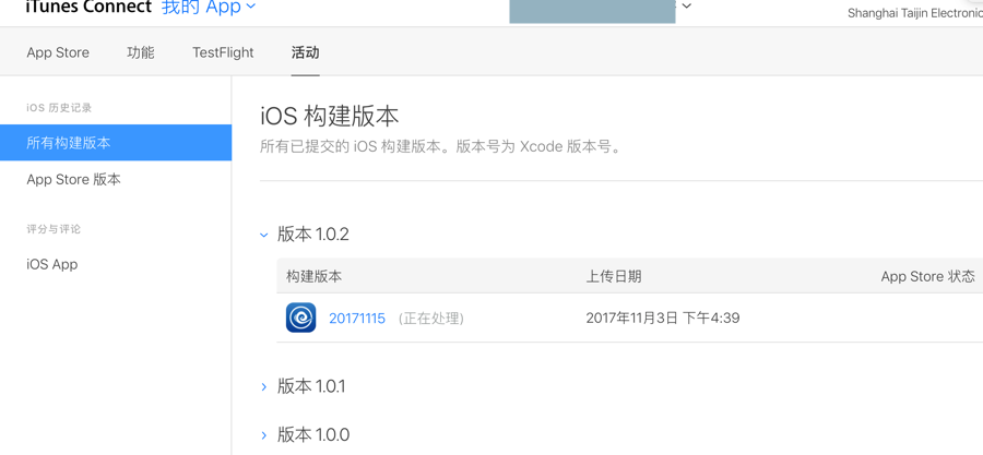 在iOS构建版本中,之前已经上传了1.0.2的版本,