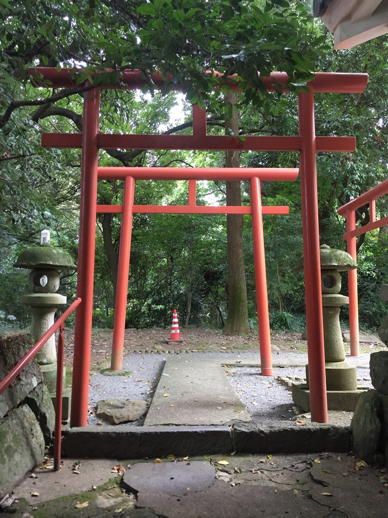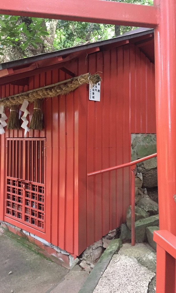 就是那边红色的神社⛩的门,可以走上山去里面是个不小的神社。