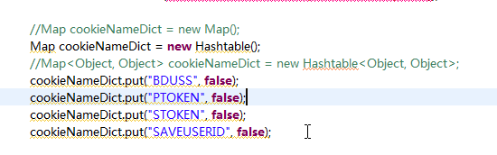 cookieNameDict.put("BDUSS", false);暂时凑合当做Dict用。