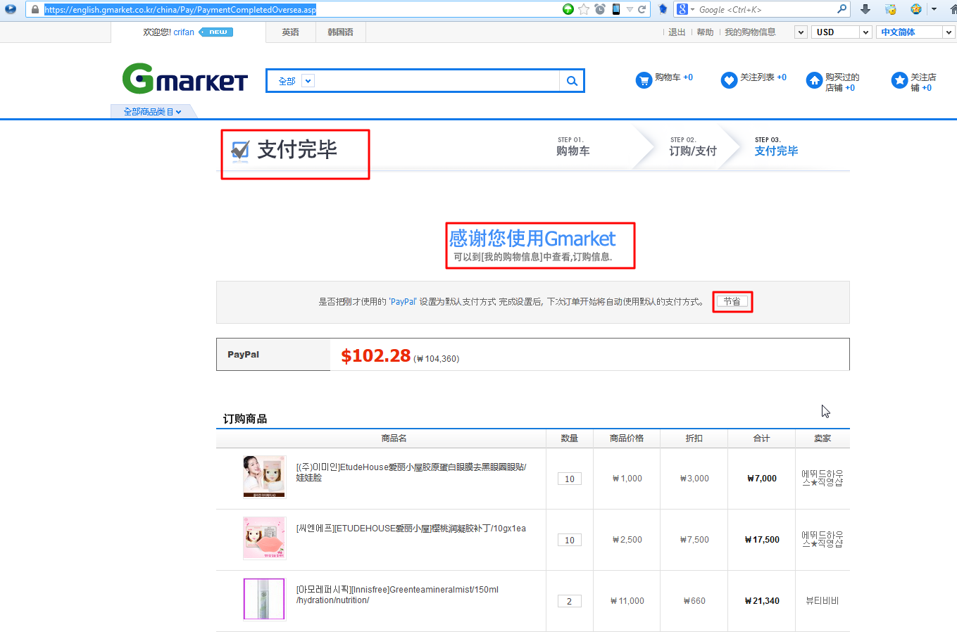 【整理】通过PayPal支付Gmarket上韩购的商品