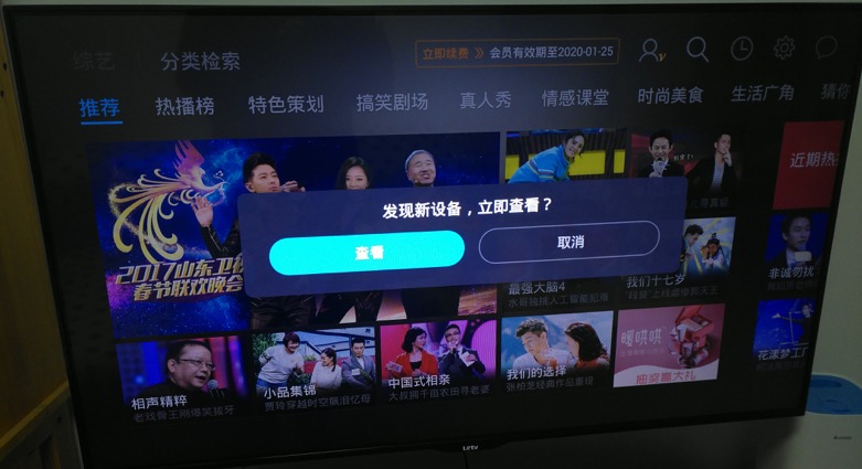 然后电视中会自动检测并弹出: