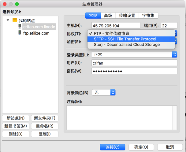 说是要选择sftp