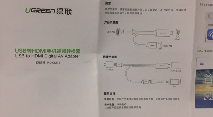 转载请注明:在路上 » 【记录】绿联的USB转HDMI手机视频转换器实物照