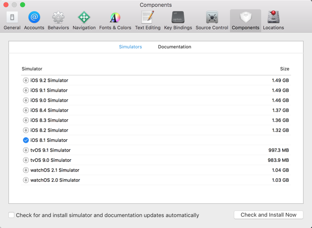 Xcode配置中,iOS 9.2和9.1的Simulator都没有选择下载