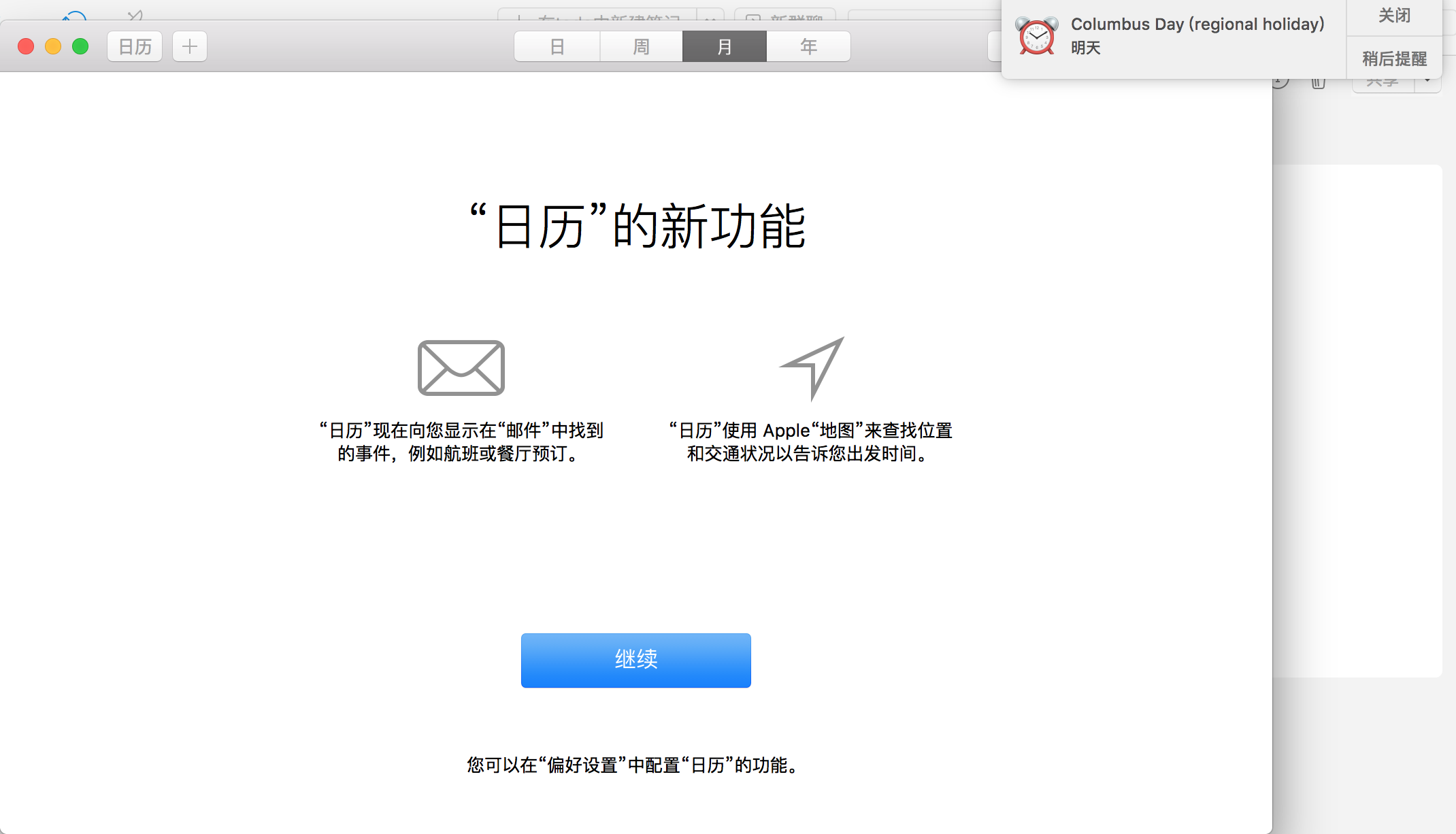 mac中的日历功能,会有及时的提醒,体验还OK: