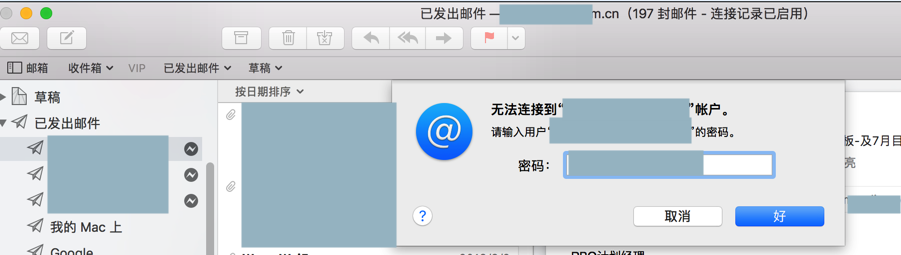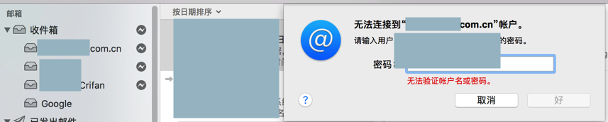 之前能正常使用的Mac的邮箱,去代收某公司的阿里云的企业邮箱