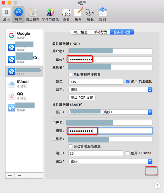 然后去看看,是否有什么配置需要配置,才能让Mac中邮箱 代收阿里云的邮件
