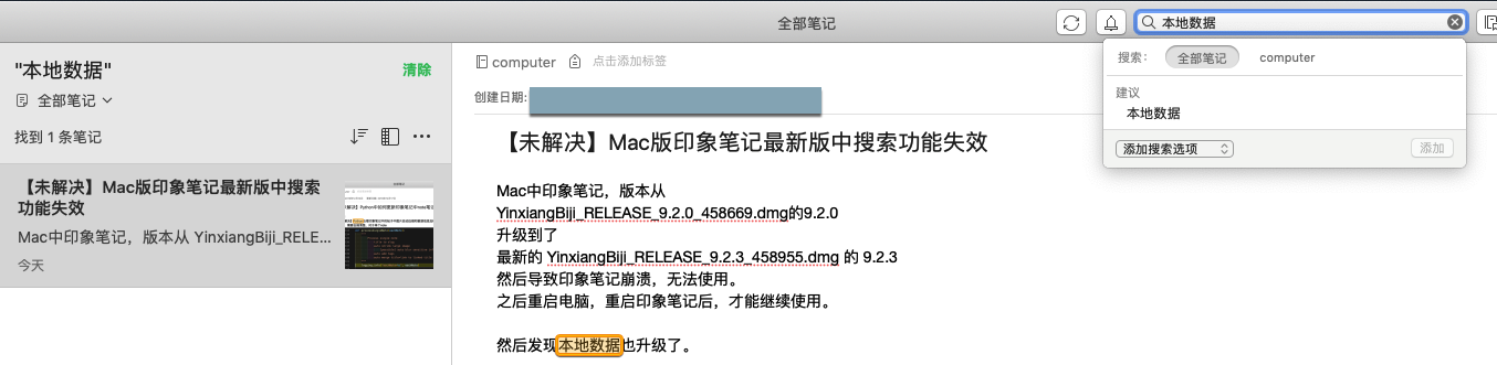 转载请注明:在路上 » 【已解决】Mac版印象笔记最新版9.2.3中搜索功能失效