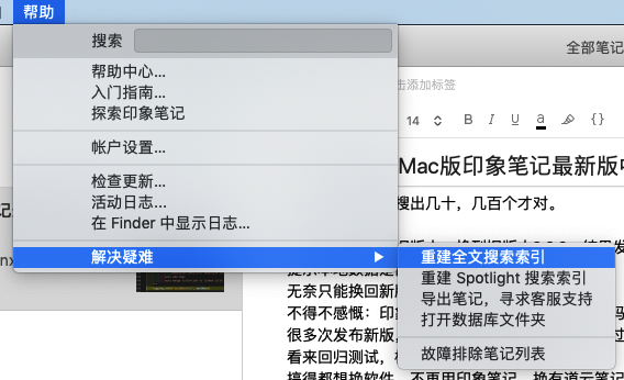 印象笔记 Mac 客户端如何重建数据库?-问题解答-使用印象笔记-印象笔记帮助中心