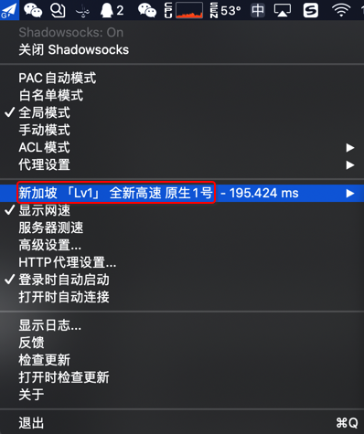 SSR中,换了一个正常的速度不错的节点:新加坡的节点: