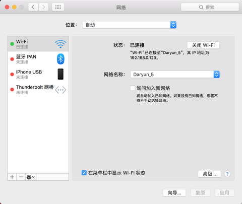 mac中的网络中,没有显示对外的IP地址: