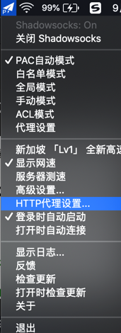 ShadowsocksX-NG-R8 -》HTTP代理设置-》 HTTP代理开启