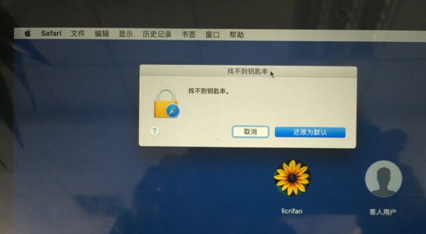 Mac登录后出现:Safari 找不到钥匙串 的问题,最终是通过