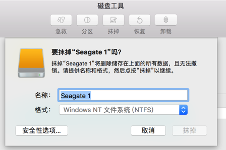 为了在Mac和PC(Windows系统)中共享资料,之前把移动硬盘格式化为NTFS了。