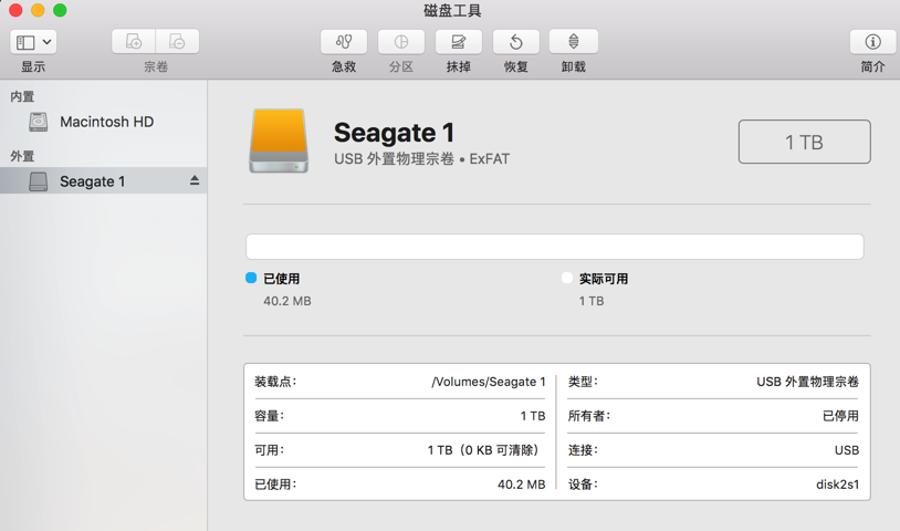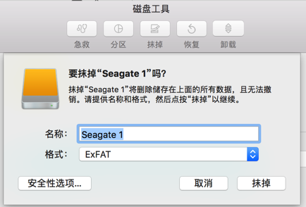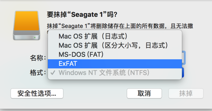另外,再把另外一个1#移动硬盘,在Mac下,格式化为exFAT: