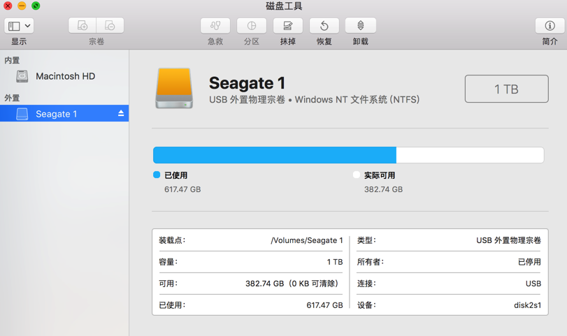 NTFS的移动硬盘,时不时就会出现被直接拔掉了,导致受损,Mac中Mounty也无法写入。