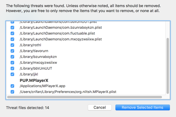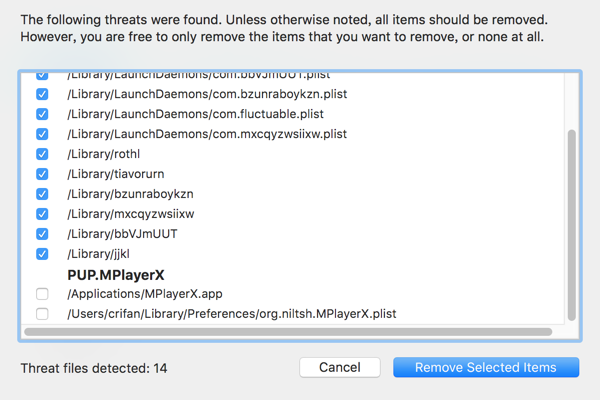 去Malwarebytes官网下载后,安装,点击Scan去扫描,然后会扫面出很多病毒,点击Remove Selected Items,根据提示再去重启Mac,即可解决此Safari浏览器中毒,时不时的打开http://dataloading.net/j/pne的问题。