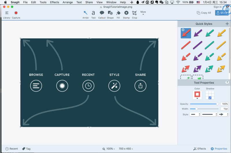 在Mac中处理图片的尺寸,经常用到Snagit的: