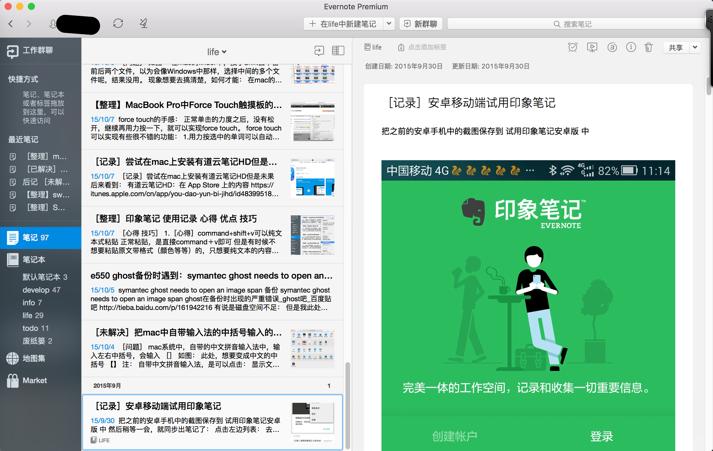 在其他一些页面中:比如印象笔记的笔记编辑页面